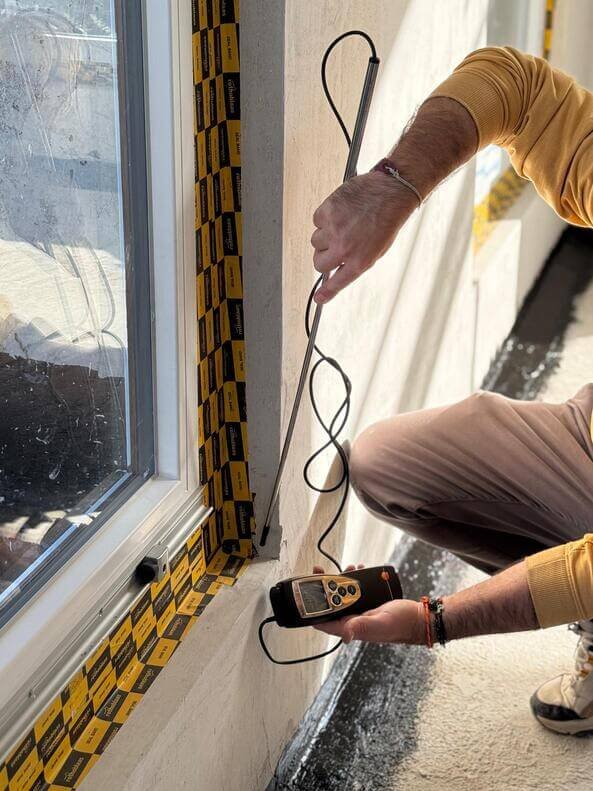 Para verificar que una vivienda cumple con el estándar Passive House, es imprescindible realizar el ensayo Blower Door, una prueba que mide la hermeticidad del edificio y permite detectar posibles infiltraciones de aire.